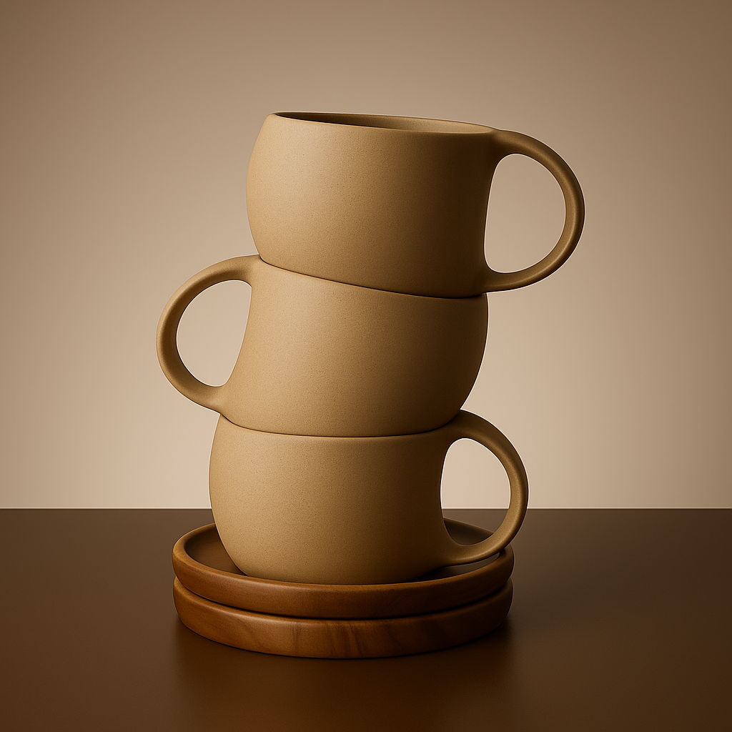 - Minimalist matte ceramic mugs with a smooth, earthy finish.